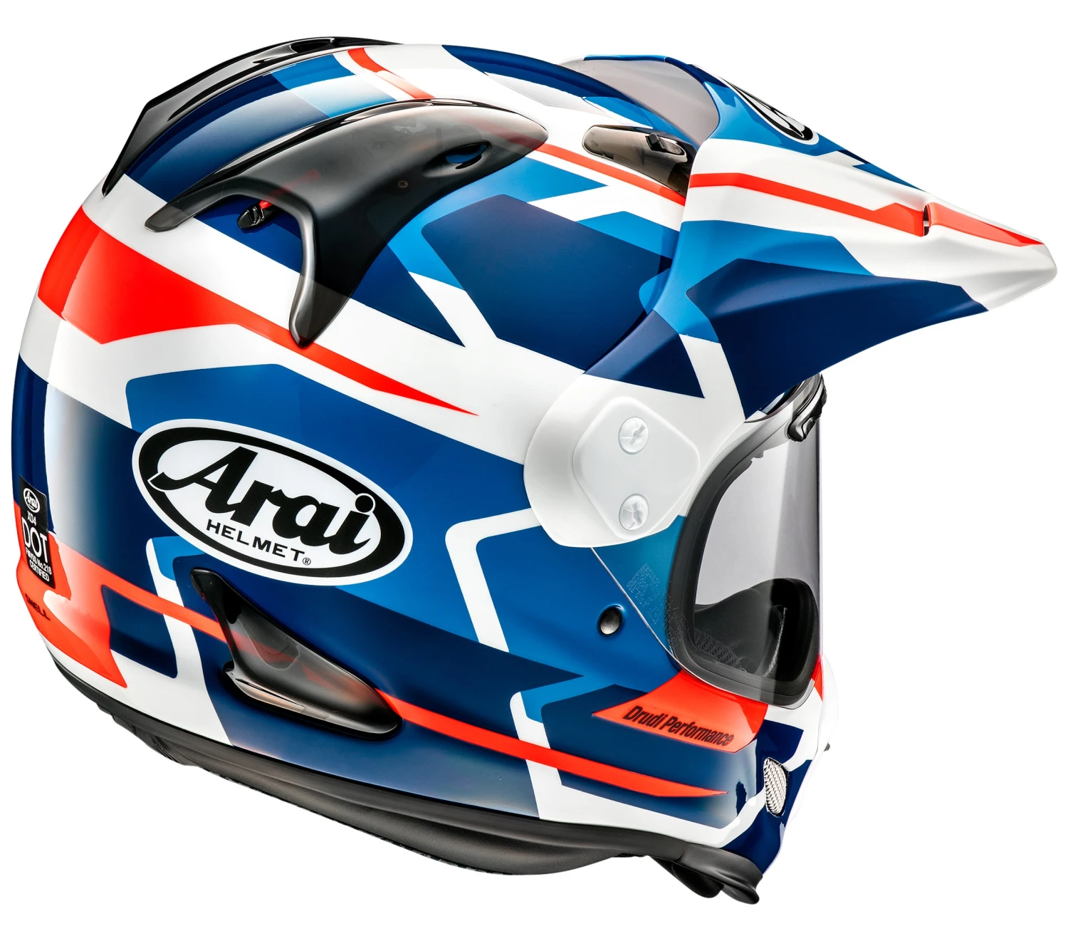 The Arai XD series is a favorite among dual-sport and adventure riders because of the very low weight, extensive safety features and comfort. Now, Arai is pushing the envelope by improving the widely popular Arai XD3 with the Arai XD4 Explore Helmet. Notable improvements for the XD4 are better ventilation with redesigned face vents and a venturi vent at the brow, adjustable cheek pads, a new visor system and a new locking face shield for improved visibility and superior aerodynamics.