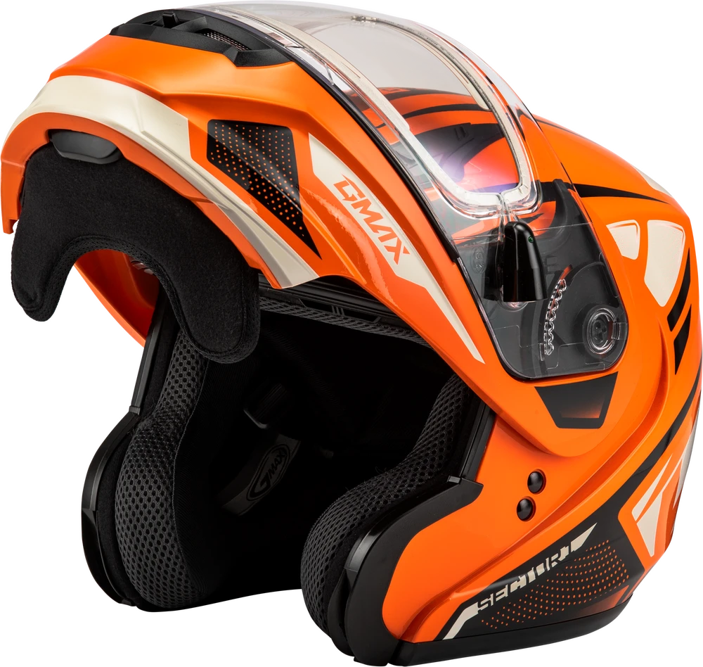 Gmax MD-04 Modular Snow Helmet Sector Gloss Orange Black Electric Shield