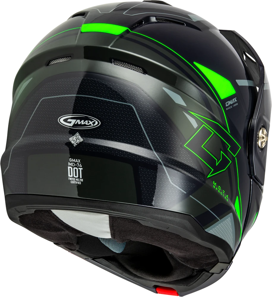 Hit the trails in comfort and safety in the stylish new MD-74 modular ADV helmet from GMAX. MD-74 checks all the boxes for adventure and snow riders who prefer the convenience of flip-up modular helmets. Features like drop down inner shield, removable neck curtain and breath box, 3 closeable vents, and available dual pane and electric shields make for an outstanding package for snowy adventures. Ride with or without the peak visor, neck curtain and breath box, and switch to a single pane shield, and your MD-74 is ready for warm weather.