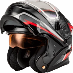 Gmax MD-01S Transistor Snow Helmet Red Black Electric Shield Electric Shield And Dual Shield