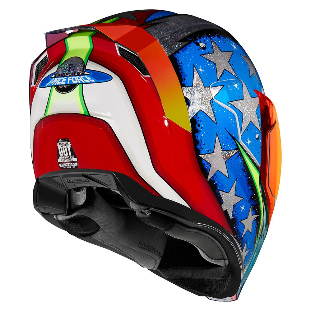 Space force is go! Built around a patriotic need to dominate the extra-terrestrial from the rings of Uranus to the deep nebular hole of the Zed cluster, the Airflite Space Force is all Buck and no Rogers. Silver flake and maximum planetary maps grace the exterior while the new Forceshield™ stares firmly into the abyss. Removable Hydradry™ interior liner, internal dark smoke Dropshield™, and included fog-free clear Fliteshields complete the package of Tomorrowland today.